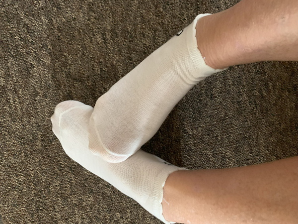 Schweiß, Fußkontakt und Hausarbeit. Dezent feucht und körpernah. Der Stoff saugt alles auf.